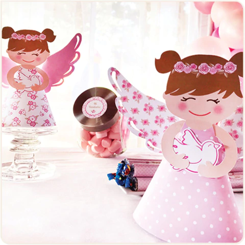 2 Angelitos 3D para decorar la mesa, impresos en papel grueso de 240 gr.